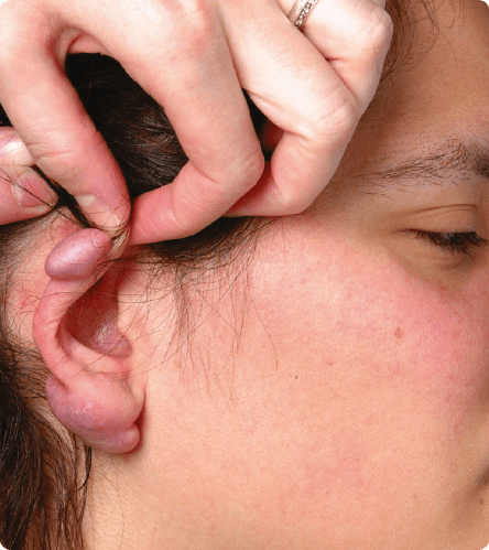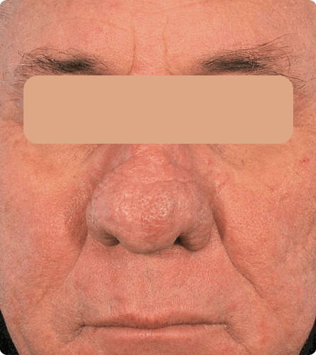 Rhinophyma is a disorder causing development of a large, bulbous nose associated with granulomatous infiltration, commonly due to untreated rosacea. This can be treated with CO2 laser as a surgical tool.