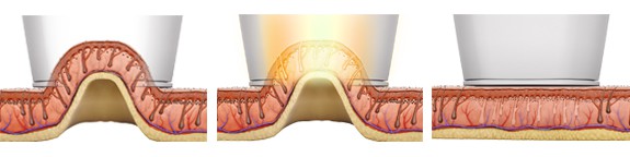 - Vacuum gently draws skin into the handpiece, skin is stretched thin and target is pulled closer to the energy source.