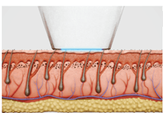 - Efficacy: Compression of the skin rotates follicle closer to the surface, blenches blood vessels and reduces competing chromophores. High fluence enables treatment of areas requiring precision and thin, light hair.
