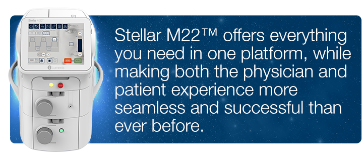 With the additional support of Lumenis’ expert clinical training, best practice marketing plans, engaging patient communications and one-to-one advice, integrating the Stellar M22™ into your clinic has never been easier.