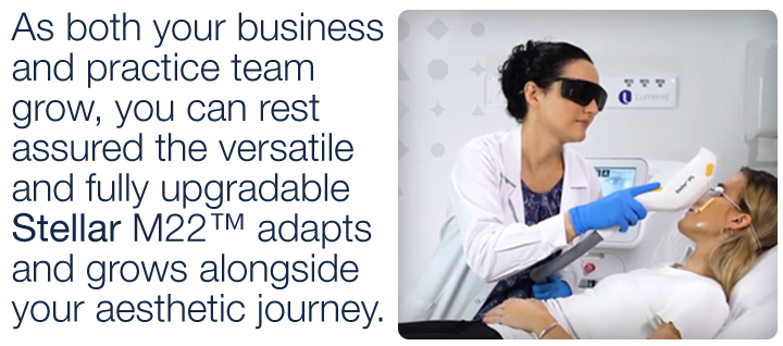 And as both your business and practice team grow, you can rest assured the versatile and fully upgradable Stellar M22™ adapts and grows alongside your aesthetic journey.