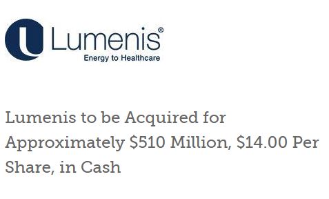 Lumenis to Be Acquired for Approximately $510 Million, $14.00 per Share, in Cash