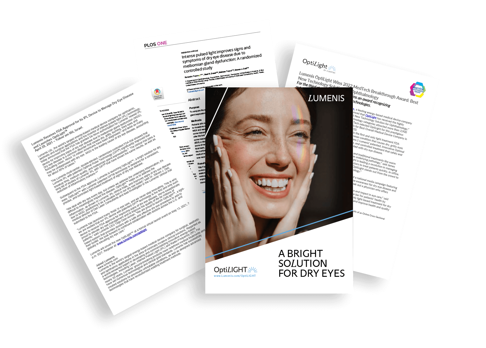 Introducing OptiLIGHT – a bright solution for dry eyes. OptiLIGHT elevates dry eye management with Lumenis’ patented Optimal Pulse Technology (OPT™) and user-centered design. Get the safe, precise, elegant procedure you want and the comfortable, effective therapy your patients need to manage dry eye disease with OptiLIGHT, a dry eye medical device.